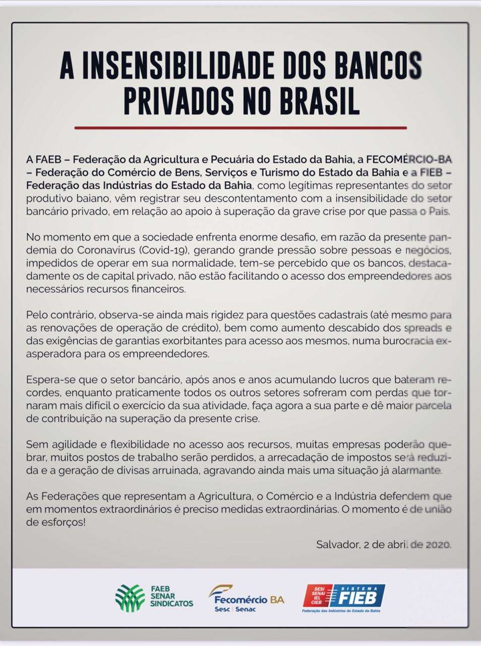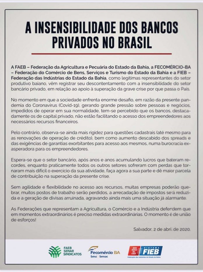 ArtigosDestaques A Insensibilidade dos Bancos Privados Por Editor - 2 de abril de 2020 Facebook Twitter Google+ Pinterest WhatsApp Email Print