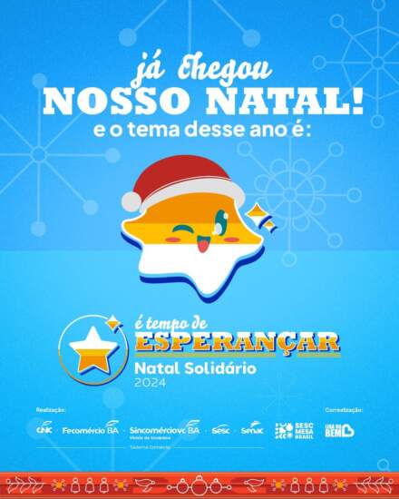“É tempo de ESPERANÇAR” – este é o tema da edição 2024 do Natal Solidário, uma campanha do Sistema Fecomércio/BA, com a participação do Sincomérciovc. Até o final de dezembro, donativos serão coletados e destinados a cerca de 200 entidades assistenciais cadastradas no programa Mesa Brasil, do Sesc, que atendem a idosos e crianças.
